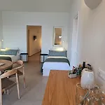 Stedet tilbyder ideel overnatning i Fira og har værelser med 15, som er indrettet med en værdiboks, en balkon og et mini køleskabsbar. De byder på udsigt over havet. Som ekstraordinært er der separat toilet og en bruser på badeværelset.